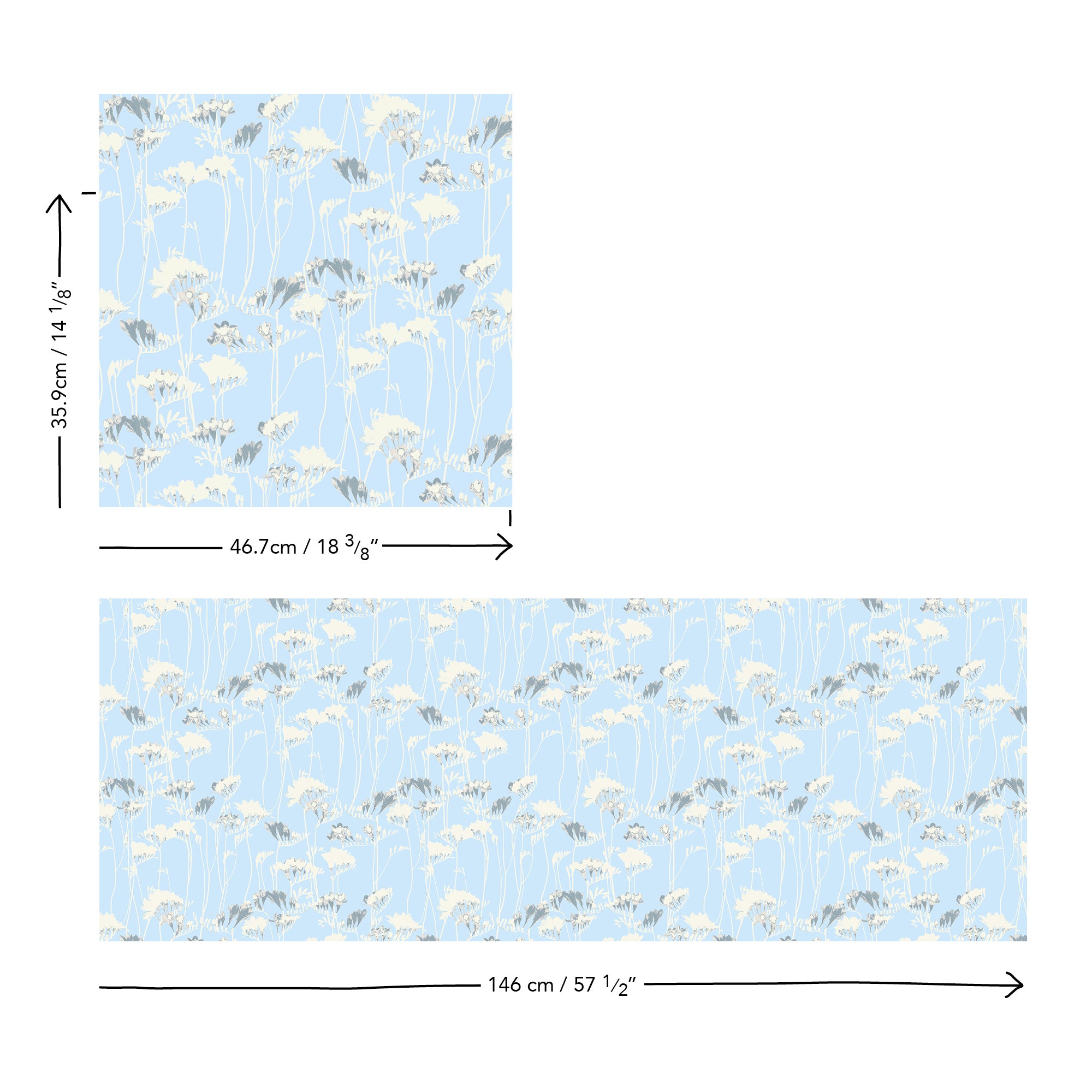 Clusters of freesias cascade across the surface in an airy all-over repeat. The floral forms overlap with gentle translucency, creating depth and movement. Their slender stems and trumpet-shaped blossoms trail vertically, evoking the natural fall of freesias in bloom while maintaining a balanced, contemporary rhythm across the fabric.