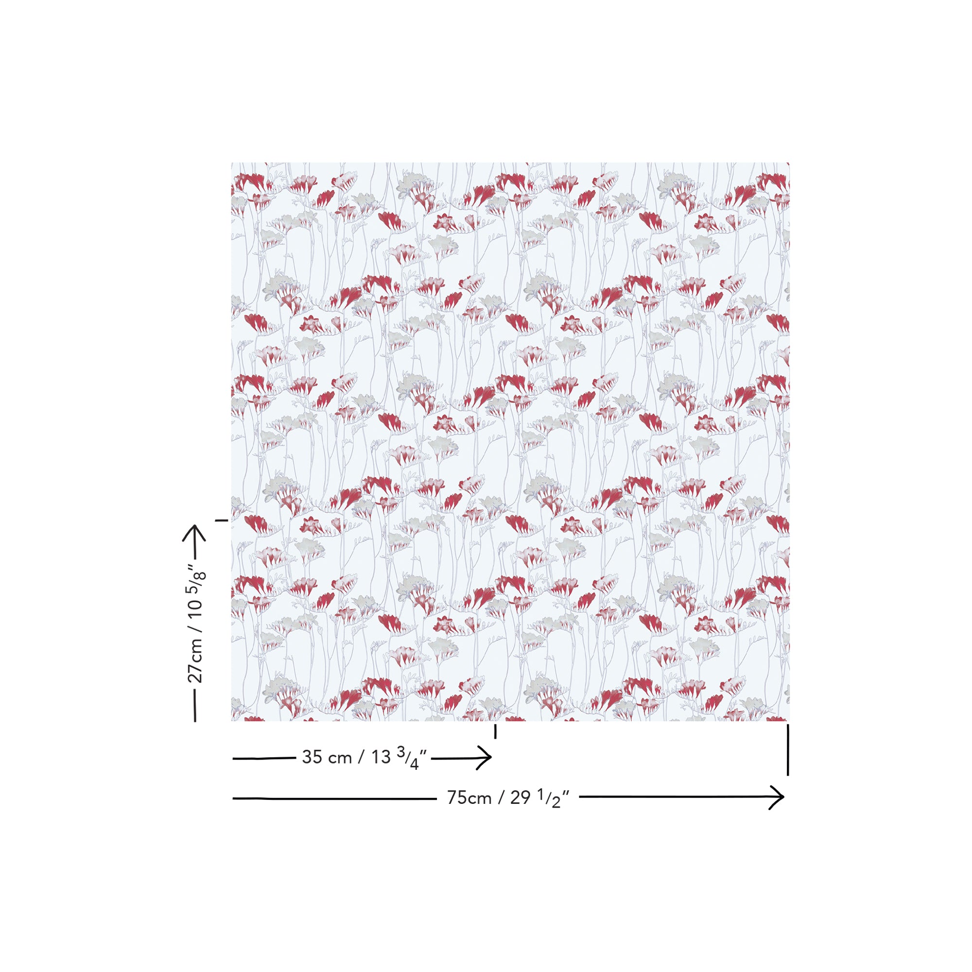 Clusters of freesias cascade across the surface in an airy all-over repeat. The floral forms overlap with gentle translucency, creating depth and movement. Their slender stems and trumpet-shaped blossoms trail vertically, evoking the natural fall of freesias in bloom while maintaining a balanced, contemporary rhythm across the fabric.