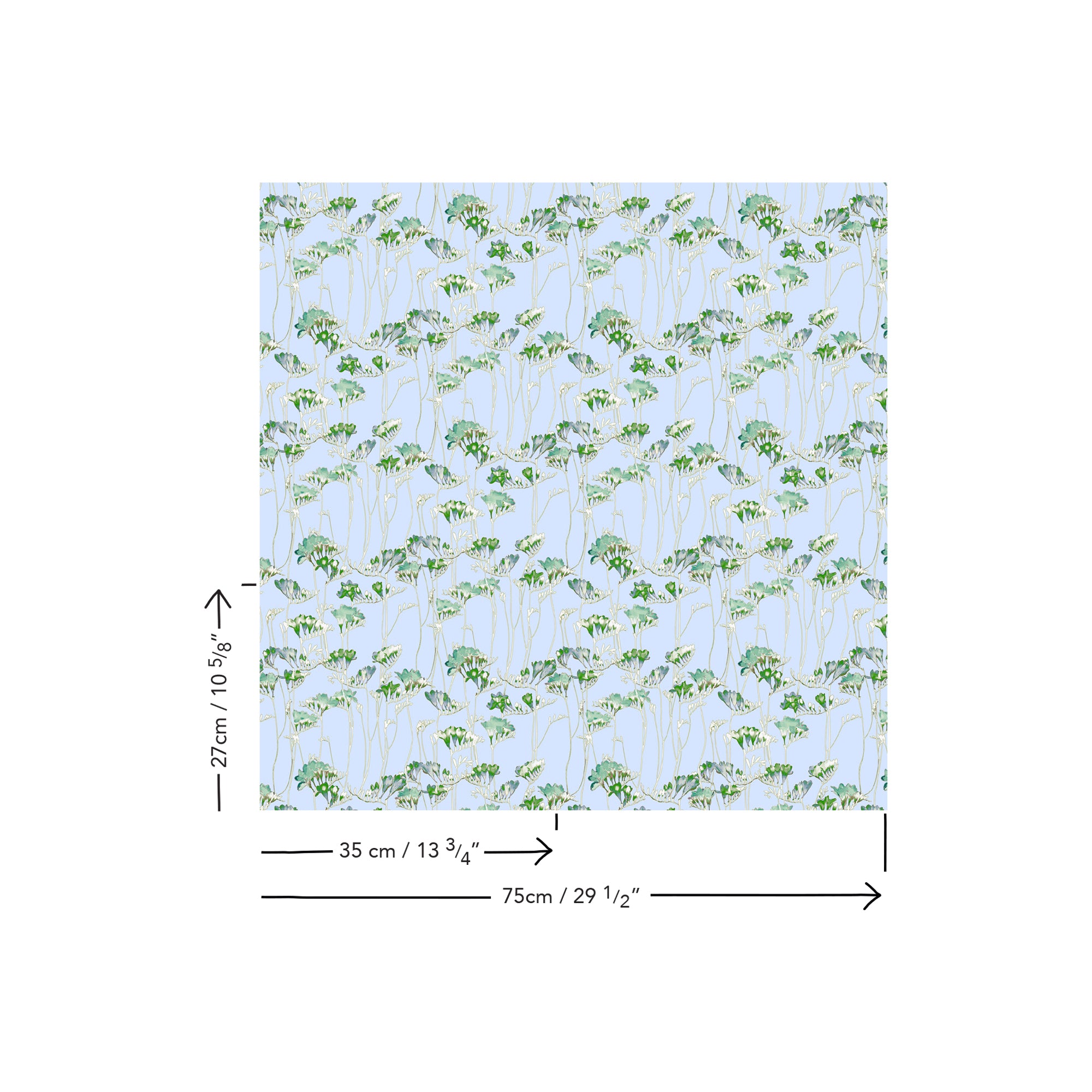 Clusters of freesias cascade across the surface in an airy all-over repeat. The floral forms overlap with gentle translucency, creating depth and movement. Their slender stems and trumpet-shaped blossoms trail vertically, evoking the natural fall of freesias in bloom while maintaining a balanced, contemporary rhythm across the fabric.